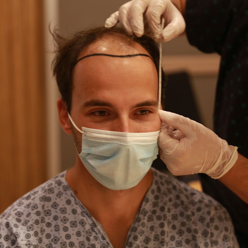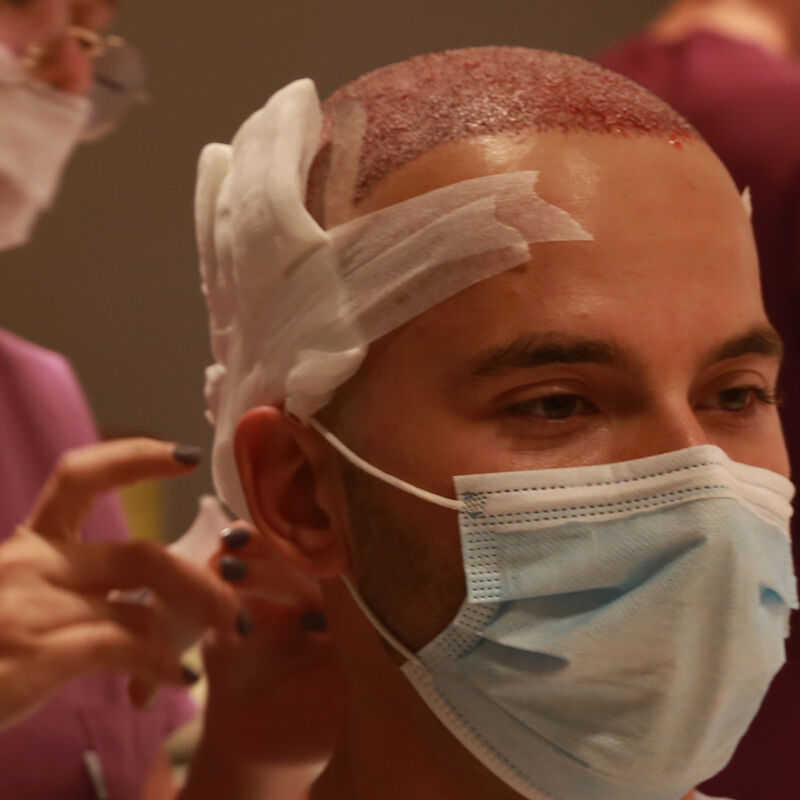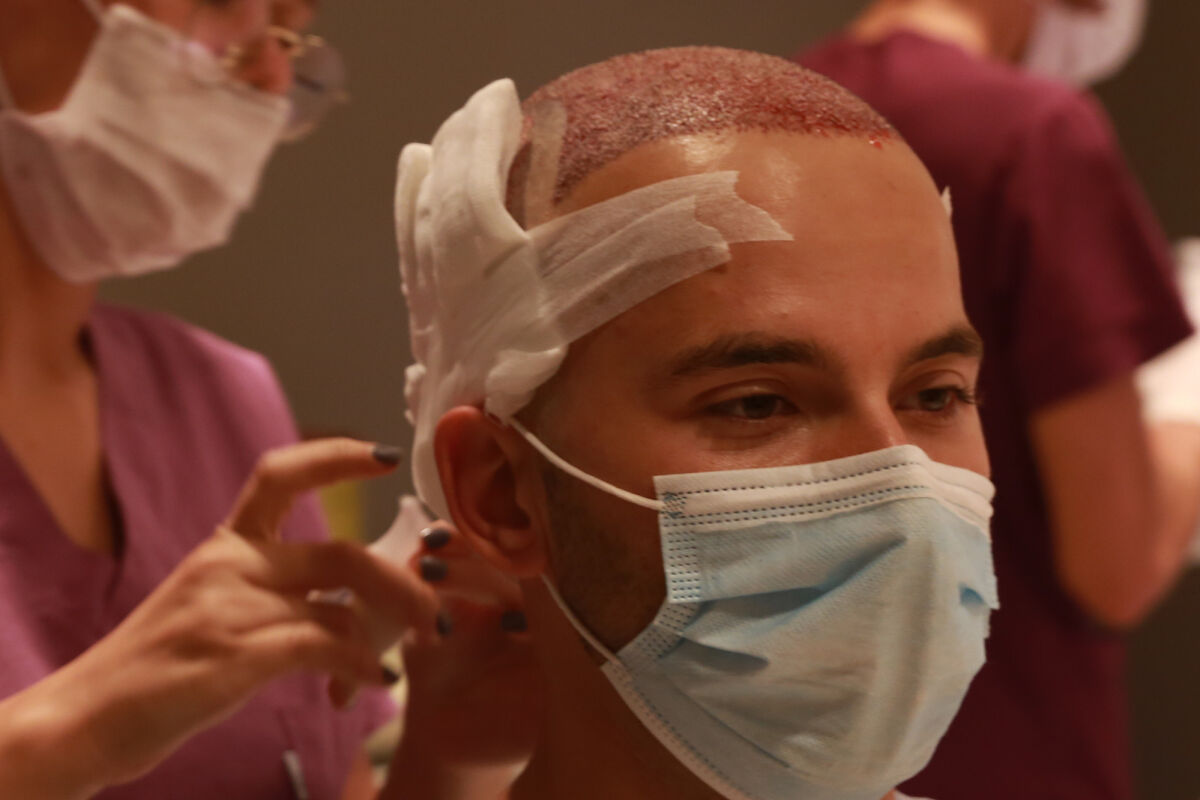 De grote dag was aangebroken, de dag van de haartransplantatie. Tijdens het ontbijt in het hotel heb je al door dat je niet de enige bent die een behandeling gaat doen die dag. Het is toch wel fijn dat je een aantal lotgenoten hebt die allemaal in hetzelfde schuitje zitten als jij. De transfer stond weer klaar om 07:30 en we werden naar de kliniek gebracht. Na een bloedtest en het tekenen van de haarlijn kon de behandeling beginnen. Ze begonnen de haarimplantatie met het uitnemen van de grafts, dit heeft bij mij ongeveer 3,5 uur geduurd. De verdovingsprikken zijn arelaxt, maar daar moet je even doorheen komen. Als de verdovingen eenmaal werken voel je niks meer gelukkig. Na een lekkere warme lunch heeft de dokter bij mij de kanaaltjes gemaakt met het 0,6mm boortje. Dit duurde ongeveer 1,5 uur en was goed te doen. Het laatste gedeelte van de haartransplantatie duurt het langste. In het laatste gedeelte plaatsen ze de grafts in de kanaaltjes die daarvoor zijn gemaakt. Dit heeft bij mij zo’n 4 uur geduurd, maar dit kwam natuurlijk ook omdat er maar liefst 6100 grafts werden geplaatst. Toen de arts ‘operation is finished’ zei tegen me, was ik erg opgelucht. Het zit er eindelijk op!