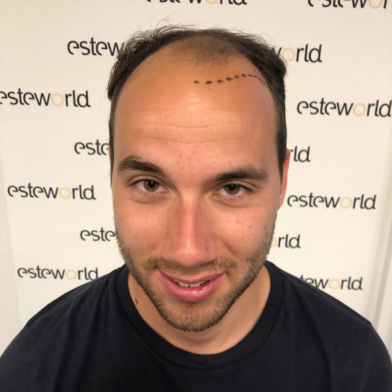 Vanaf m’n 16e begon ik al kaal te worden. Het begon met de inhammen die een beetje naar achteren trokken. Later werd ook het haar midden op m’n hoofd dunner en moesten de haren op de kruin er ook aan geloven. Ik heb in de tussentijd veel geprobeerd om de haaruitval tegen te gaan, helaas tevergeefs. Niks werkte écht goed, of ik kreeg er flinke bijwerkingen van waardoor ik er mee moest stoppen. In het afgelopen jaar is de haaruitval met een stroomversnelling gegaan. Ik besloot om me te gaan oriënteren op een meer permanente oplossing. Het internet staat vol met aanbieders van haartransplantaties, zowel in Nederland als Turkije. Uiteindelijk ben ik bij Esteworld gekomen vanwege de goede prijs/kwaliteit verhouding, de goede naam en de realistische consults die ik gehad heb bij Margo.