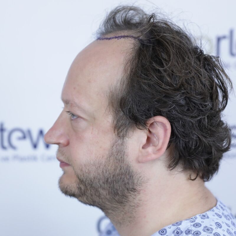 hem hebben we mijn nieuwe haarlijn bepaald. Ik heb bewust gekozen voor een hoge haarlijn. Zo was het altijd al en lager zou het oppervlakte te groot maken wat weer zal resulteren in een lagere dichtheid.Wat ik erg prettig vond, is dat Özlem steeds alles uitlegde en vertaalde. Zo werd ik steeds op mijn gemak gesteld en checkte ze steeds of alles