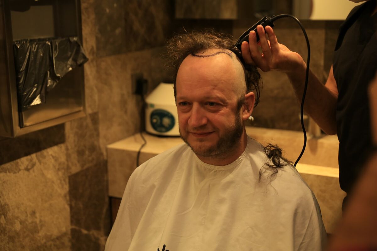 humor. En toen kwam het moment dat ze gingen beginnen met de haartransplantatie..