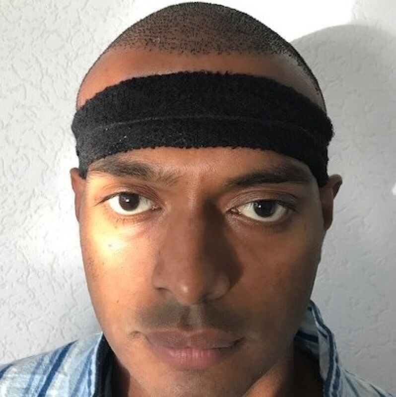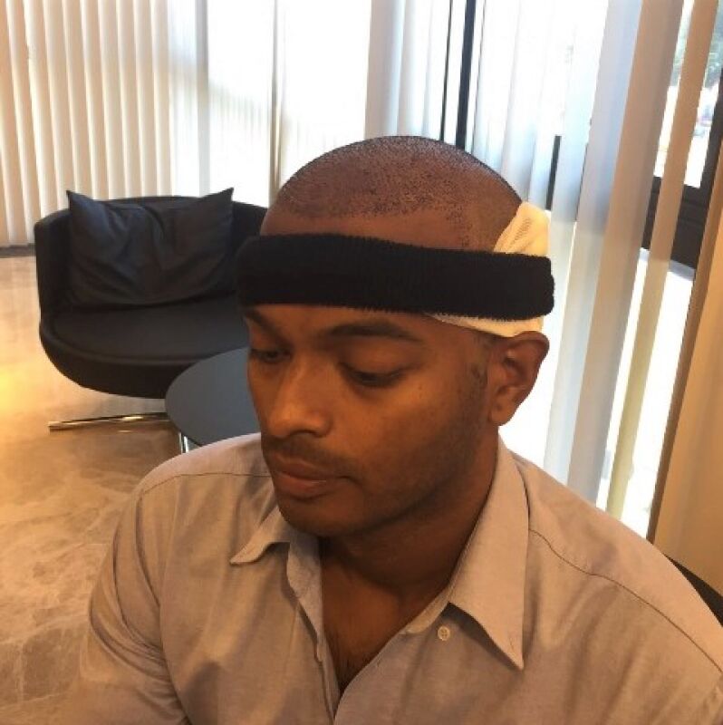 We zijn vroeg opgestaan en het ontbijt in het hotel was lekker. Mij was verteld om goed te eten voor de behandeling. We werden op tijd opgehaald. Ook gingen er nog 2 andere jongens mee die ook een haartransplantatie die dag hadden staan bij Esteworld. Beiden spraken ze Nederlands, het was fijn om even contact te hebben met lotgenoten. We konden zo onze spanningen en verwachtingen met elkaar delen. Eenmaal in de kliniek werden we alle drie begeleid door de Nederlandse Hostess. Ze vertelde ons wat er allemaal ging gebeuren vandaag. Als eerst zou er bloed worden afgenomen om te kijken of alles goed was. Vervolgens werd mijn hoofd kaal geschoren. Daarna kreeg ik een gesprek met de arts. Hij was erg vriendelijk en behulpzaam. Hij nam het proces door en ging de haarlijn tekenen. Ook vertelde hij dat er waarschijnlijk 3000 grafts getransplanteerd zouden worden. Hierna werd ik naar de behandelkamer gebracht en werd ik verdoofd. De verplegers en de specialist hebben de haarzakjes er uit uitgehaald. De eerste helft van de behandeling duurde ongeveer 2.5 uur. Vervolgens werd ik begeleidt naar de kantine waar een lunch klaar stond. Na de lunch ging zou de tweede helft van de haartransplantatie starten. Dit deel van de behandeling was niet pijnlijk. De arts heeft de kanalen open gezet en alle haarzakjes zijn geplaatst. De chirurg heeft alles gecontroleerd en na de behandeling heeft hij me ook verteld hoe ik moest slapen en waar ik allemaal rekening mee moest houden. Ik kreeg een tasje mee met medicijnen, een icepack en een hoedje tegen de zon mee. De haartransplantatie was goed verlopen en er waren 3180 grafts getransplanteerd. Melanie nam daarna ook nog even de tijd om uit te leggen hoe het verder zal verlopen. Daarna zijn we weer terug gebracht naar ons hotel. ’s Avonds zijn we nog samen met een andere jongen die ook in ons hotel verbleef en de behandeling ondergaan had naar de shopping mall geweest tegenover ons hotel om te eten. Het was ook fijn om even onze ervaringen met elkaar te delen. Slapen was wel lastig. Ik heb geprobeerd om mijn hoofd recht te houden en het was goed dat ik op advies van Esteworld een reiskussen mee had. Ik heb geen pijn gehad.