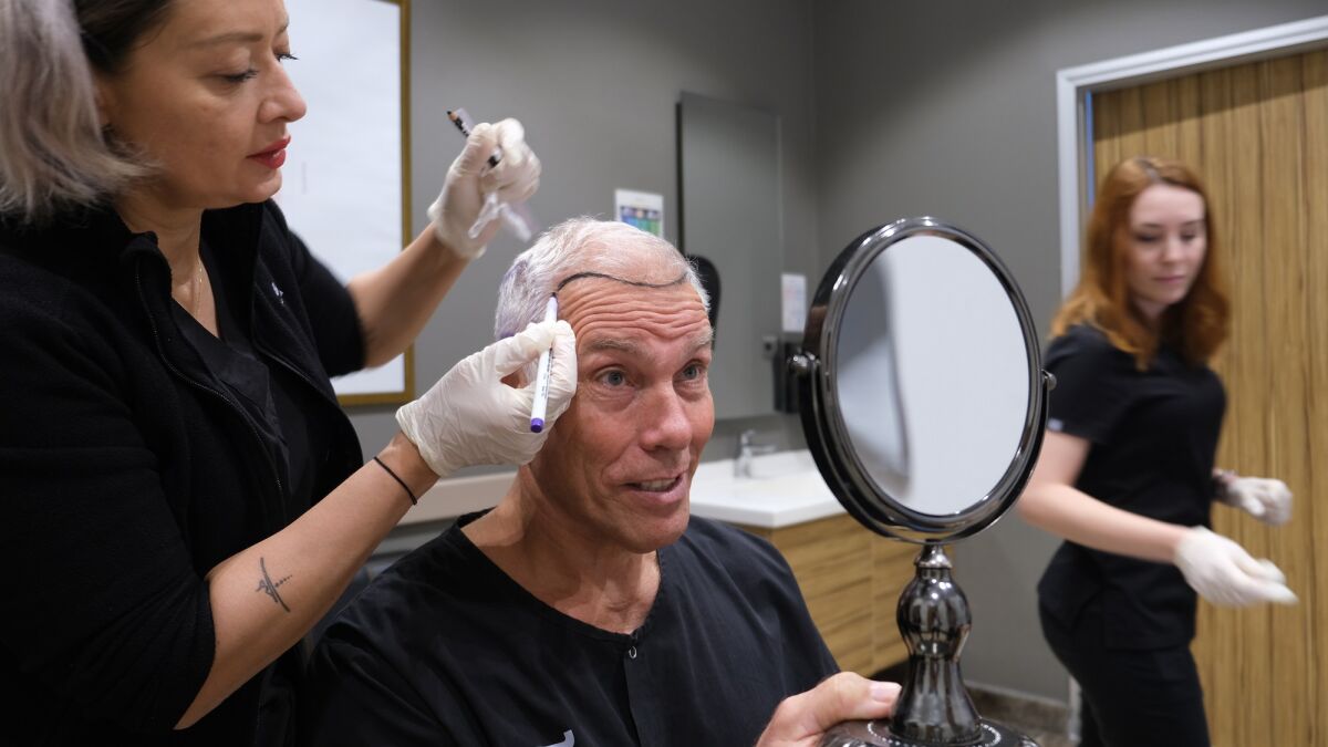 De volgende ochtend om 07.30 uur opgehaald en helaas niet van het uitgebreide ontbijtbuffet kunnen genieten omdat je ivm. het roesje wat je krijgt nuchter moet zijn. Aangekomen in de kliniek werd ik opgewacht door Hava mijn tolk, Hava heeft mij de gehele dag perfect en zeer uitgebreid geholpen, waarvoor nogmaals dank ! Nou, het gaat beginnen ! eerst het nodige papierwerk, gevolgd door bloedprikken, dit om te kijken of ik gezond ben en niet onbelangrijk om na de behandeling PRP toe te passen om je herstel te boosten. Na het prikken naar de haarchirurg Isilay, een erg aardig vrouw, die samen met mij mij haarlijn bepaalde en daar waren we snel uit ! Zij vertelde mij dat ik een goed donorgebied had en schatte in dat er zo'n 4000 grafts nodig zouden zijn. Mijn haar eraf ! en dat voor het eerst in 64 jaar !