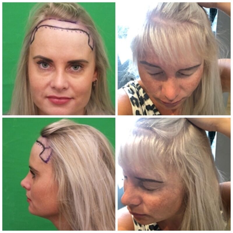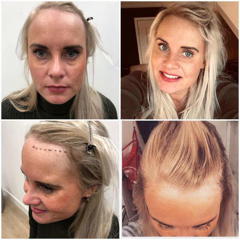 Na het ontbijt werd ik al vroeg opgehaald door de chauffeur en na een minuutje of 20 rijden waren we er. Bij aankomst, het zien van de kliniek en het warme onthaal werd ik een stuk rustiger. Ik had direct het gevoel dat ik hier in goede en professionele handen was. Mijn hostess Sema was echt een schatje en heeft mij de hele dag super goed begeleid in het Nederlands. Nadat we al het papierwerk hadden gedaan ging ik de chirurg ontmoeten en tot mijn verbazing was dit ook een vrouw. Ik weet niet waarom, maar ik heb de hele tijd een wat oudere deftige man met een witte jas en witte baard voor ogen gehad. En bij binnenkomst was dit alles behalve het geval! Het was juist een mooie jonge vrouw die mij meteen op mijn gemak wist te stellen. We hebben samen de haarlijn afgetekend en ik weet nog dat ik dacht ‘wauw, als dit echt lukt ben ik zo mega gelukkig’. En nu ik de foto’s terugkijk vlak voor de behandeling, waarbij de haarlijn getekend was en ik in de spiegel kijk nu… Wauw.
