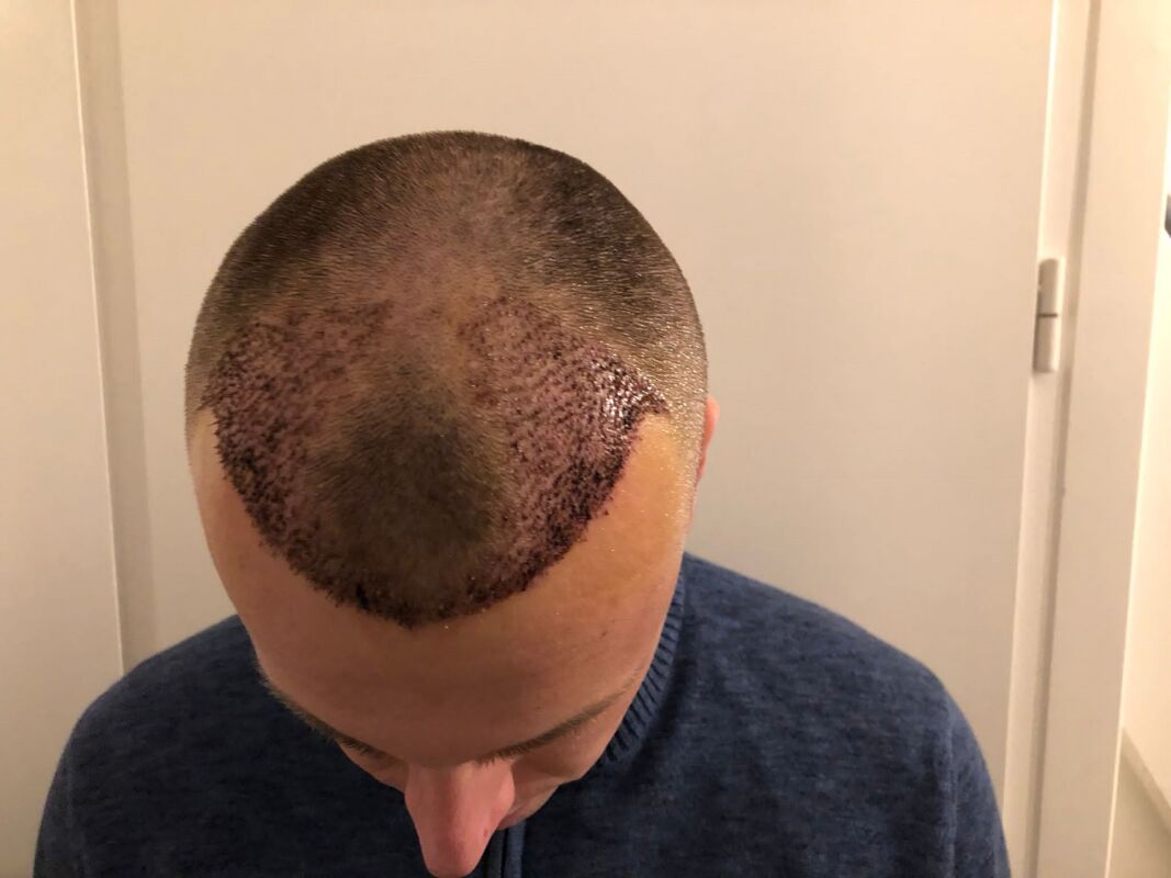 Nadat de grafts waren geoogst mocht ik op mijn rug komen liggen en kwam de chirurg handmatig een voor een de kanaaltjes openen. Na een korte lunch werden de werkzaamheden hervat en waren drie personen de haarzakje aan het planten. Uiteindelijk verliet ik om 14.30 uur Turkse tijd de kliniek en werd ik naar het hotel gebracht. Al met al viel het mij allemaal erg mee, ik heb eigenlijk geen pijn gehad, de tijd die het in beslag nam was prima te doen. Nog voordat ik in het hotel aankwam had Joren mij al een appje gestuurd om te vragen hoe het was verlopen.