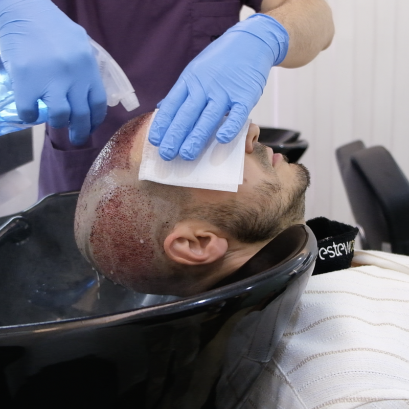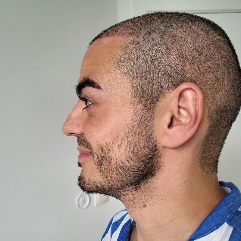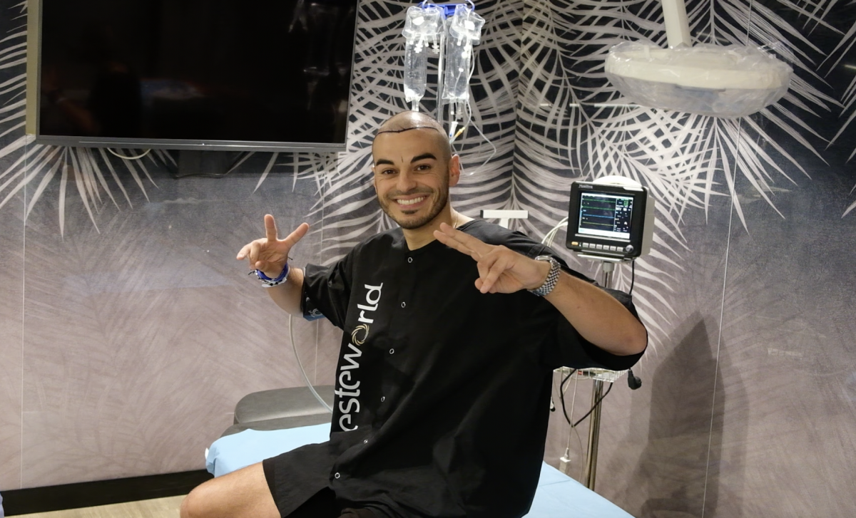 Dag 2: 15-07-2024 De volgende dag was het zover. Ik werd zoals afgesproken stipt om 07.30u opgehaald door een taxi chauffeur van Esteworld. In het busje trof ik 2 heren, die ook een haartransplantatie gingen doen. Het was heel fijn om lotegenoten te hebben om de zenuwen te temperen! Aangekomen bij de kliniek, werden we ontvangen door ieder een eigen Nederlands sprekende gastvrouw. Na wat papierwerk, bloedonderzoek, omkleden, gesprekje met de anesthesist en gesprekje met de arts, werd mijn haar door de goedlachse kapper afgeschoren. Weer even terug bij de arts om de haarlijn definitief te bepalen en daarna go time! Transplantatie: Ik heb een roesje gekregen en hierdoor de verdovingsprikjes niet gevoeld! Tijdens de ingreep heb ik genoten van mijn eigen afspeellijst. Hierdoor was ik in mijn eigen wereld en vlogen de uren voorbij. Na een korte pauze tussen het verwijderen van de grafts uit het donorgebied(4500) en het genot van een fijn lunch, werden de grafts op het hoofd geplaatst gevolgd door de Acell stamcelbehandeling. Het enige wat ik als vervelend heb ervaren, was het lange liggen.Terug in het hotel heb ik voor een niet-rugslaper, best een prima nacht gehad!