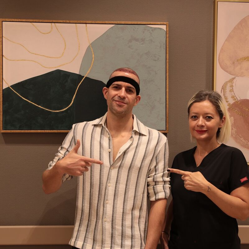 Behandeldag opgehaald aan het hotel en naar Esteworld gebracht. Ben daar goed ontvangen met wat gebrekkig engels tot mijn fantastische nederlandse hostess Leyla aankwam. Administratie en betaling in orde gebracht. Foto’s genomen en dan naar de chirurg om de haarlijn te bepalen. Dan één van de meeste gevreesde onderdelen, de kapper. Mijn haar afscheren gaf eigenlijk wel een bevrijdend gevoel en het resultaat was beter dan verwacht. Daarna kon de extractie van de haarzakjes beginnen. Ik werd naar een koude kamer geleid waar er een chill muziekje speelde. Ik heb eerst nog een stuk cake en fruitsap gekregen (ik had mijn ontbijt overgeslaan). Eerst werd de plaatselijke verdoving aangebracht, kan niet zeggen dat ik hier veel van gevoeld heb door het roesje dat je krijgt. Ik had wel koud en dat merkte ze zelf ook en ik kreeg al snel extra dekens om mij warm te houden. Daarna worden de haarzakjes verwijderd doormiddel van het saffier boortje. Dan werden de gaatjes in het ontvangstgebied gemaakt. Hierna iets gegeten en dan zijn ze begonnen met de haarzakjes in te brengen. Het is misschien wat raar maar ik had het gevoel dat ik een relaxerende spa dag achter de rug had. En het was best wel interessant om het hele proces eens mee te maken. Na het aanbrengen van de gel en verband op donor gebied en wat foto’s volgt het gesprek met de hostess over de nazorg en krijg je alle benodigdheden mee + de bloedresultaten.