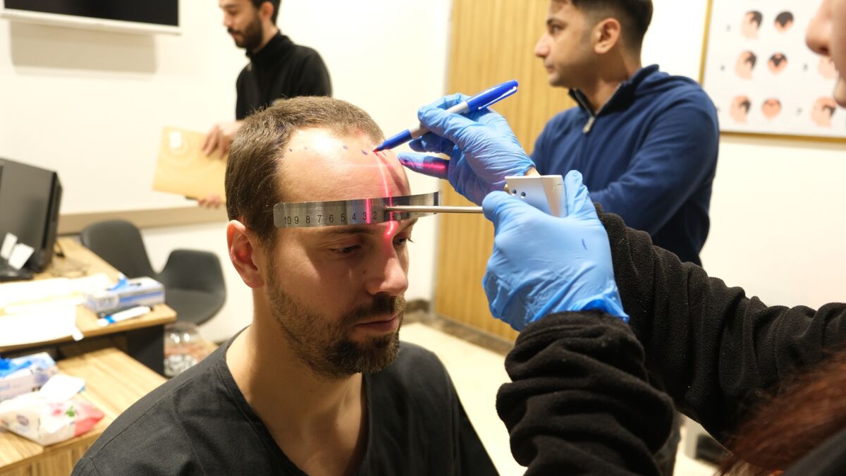Na twee dagen toerist te hebben gespeeld, was de grote dag daar. Ik werd vroeg in de ochtend opgehaald door de chauffeur van Esteworld en naar de kliniek gebracht. Daar werd ik ontvangen door de Nederlandstalige Esma. Zij heeft mij gedurende het hele proces begeleid. Als eerste werd de betaling geregeld. Het fijne is dat je zelf mag beslissen of je contant wilt betalen of met de pin. Daarna werd er bloed geprikt om te controleren of ik gezond was en geen infecties had. Ook werd er bloed afgenomen voor de ACell-behandeling, waarvoor ik had gekozen. Na het bloedprikken werden de laatste documenten doorgenomen en werd ik meegenomen naar de arts om mijn haarlijn te bepalen. Dit gebeurt volledig in overleg, dus je hebt hier zelf ook inspraak in.